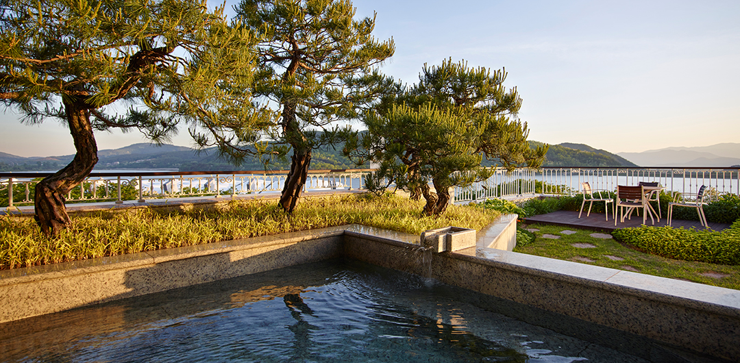 온천수의 따뜻함이 흐르는 노천탕